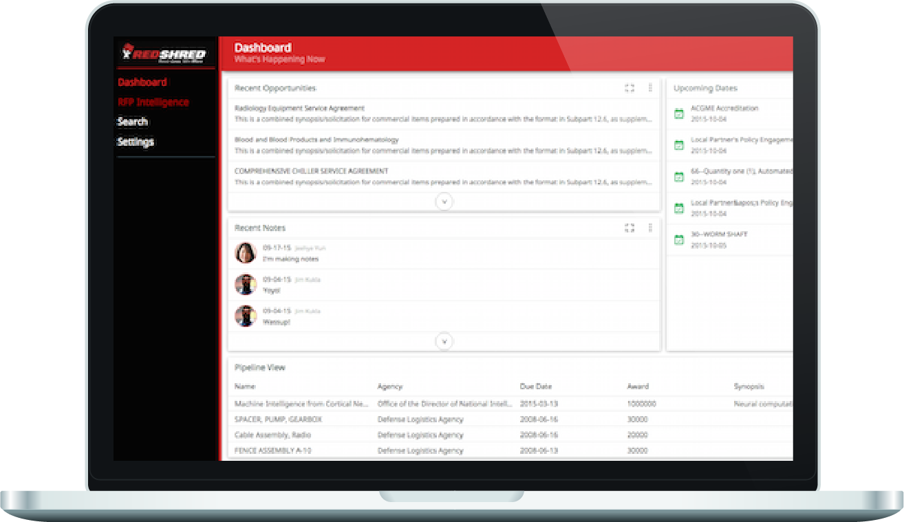 RedShred helps contractors quickly find and respond to the right government RFP gigs to save them time. As a company whose value proposition is time savings, their own speed to market is an essential ingredient in fulfilling that promise. With the technical chops in place to develop a new end-user experience, RedShred needed a partner to work on the client facing application while they continued to build and extend the backend.